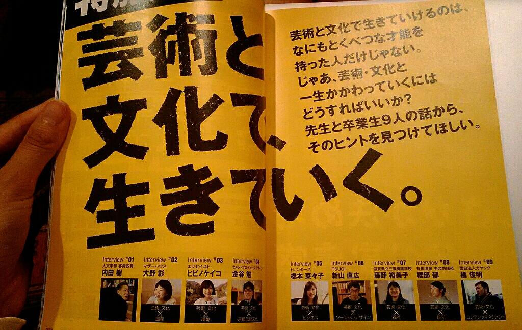 京都精華大学の大学案内2017「芸術と文化で生きていく」に、特別インタビューが掲載されました。 わたしは大学三回生で京都の田舎のお寺に暮らし始め、すっごく浮いてる存在でした。だからなんか、大学の看板的なものに載るのは不思議。
